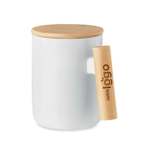 Mug en porcelaine avec couvercle et poignée bambou 380ml