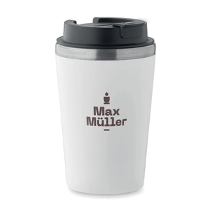 Optez pour un support de communication durable et pratique avec ce mug isotherme personnalisable de 350 ml à double paroi. Il associe une paroi extérieure en polypropylène (PP) à une paroi intérieure en acier inoxydable recyclé à 90 %, recouvert d’un revêtement en céramique pour un confort de dégustation optimal.