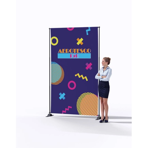 Ce photocall en aluminium noir est est un mur d'images composé de 4 tubes transversaux ajustables en hauteur et en largeur et de 2 pieds. Allant jusqu'à 240cm de long, comme 240cm de large, ce photocall est très pratique car facile à installer. Personnalisé en France sur une housse polyester 260g/m² avec dos noir occultant, l'habillage convient parfaitement pour une utilisation intérieure avec son traitement anti-feu norme européenne B1. L'ensemble est conditionné dans un sac de transport qui contient le stand complet. L'impression est possible en recto seul ou en recto-verso. La housse est amovible et renouvelable. Les fourreaux en haut et en bas du visuel permettent de faire passer les barres horizontales et de tendre parfaitement le visuel.