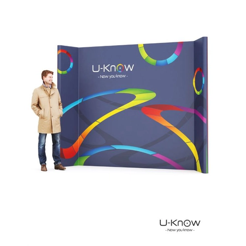 Ce mur d’image aussi appelé photocall se distingue par sa structure gonflable. D’une longueur totale de 3m, il se démarque par ses 2 retours de 50cm. L’anglet ouvert à 120° donne un effet plus accueillant que les autres stands. La housse 100% polyester imprimée en sublimation est réalisée en haute définition. L’ensemble est livré déjà assemblé : le montage se fait donc en 1 minute à l’aide d’une pompe manuelle ou d’un gonfleur 400 W. Une impression recto/verso est possible sur ce produit. Un trolley à roulettes est en option pour un transport plus facile.sublimation , fermeture à glissière sur la base . Pouvant être placé directement le long d’un mur Impression recto /verso possible.