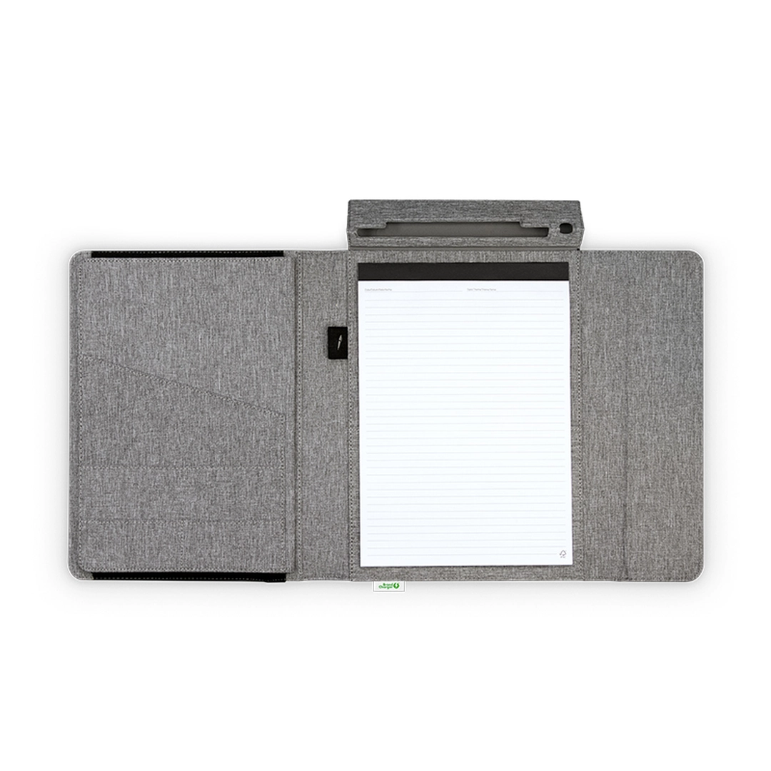 L'intérieur de ce conférencier révèle un espace organisé et réfléchi, avec un bloc-notes A4 de papier certifié FSC pour toutes vos prises de notes importantes, une poche dédiée pour tablette ou ordinateur portable jusqu'à 13 pouces, ainsi que de multiples compartiments spécialement conçus pour vos essentiels de voyage et d'affaires, y compris les cartes de visite. Cette attention aux détails fait de notre conférencier un produit intelligent, essentiel pour toute personne désireuse de concilier éthique environnementale et nécessités professionnelles.