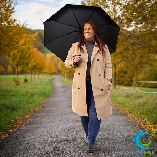 Pesant seulement 415 grammes pour un diamètre ouvert de 107 cm et se repliant à une longueur compacte de 31 cm, ce parapluie est l'accessoire idéal pour les déplacements, offrant une protection fiable sans encombrement. Sa conception windproof assure une stabilité sans faille, même dans les conditions les plus venteuses, tandis que la technologie WaterSAVE® souligne un engagement fort envers la conservation des ressources naturelles.