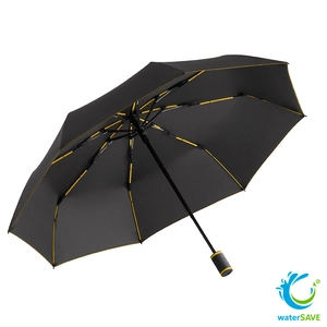 Sa toile waterSAVE® par FARE. Composée de polyester pongé OEKO-TEX issu à 100% de bouteilles PET recyclées, elle est teinte via un procédé qui économise près de 6L d'eau par parapluie, tout en réduisant l'énergie nécessaire et la production de déchets.