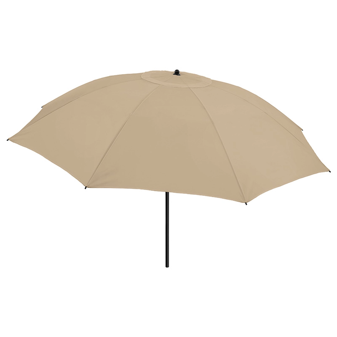 Ce parasol se distingue non seulement par sa taille mais aussi par ses caractéristiques innovantes telles qu'un couvercle de ventilation sur le dessus pour réguler la pression du vent, assurant ainsi une stabilité accrue lors des rafales. Le réglage en hauteur facile et la glissière de sécurité contribuent à une manipulation aisée, tandis que son étui de transport confortable facilite le rangement et le transport.