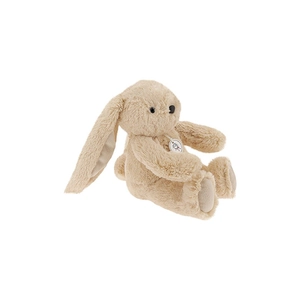 Petit lapin tout juste échappé de son terrier et que l’on retrouve assissur son derrière laissant apparaître le pompon de sa petite queue en boule. Ses longues oreilles qui entourent sa tête toute ronde et mutine sont pour une peluche, ce que l’on caresse sans hésiter.