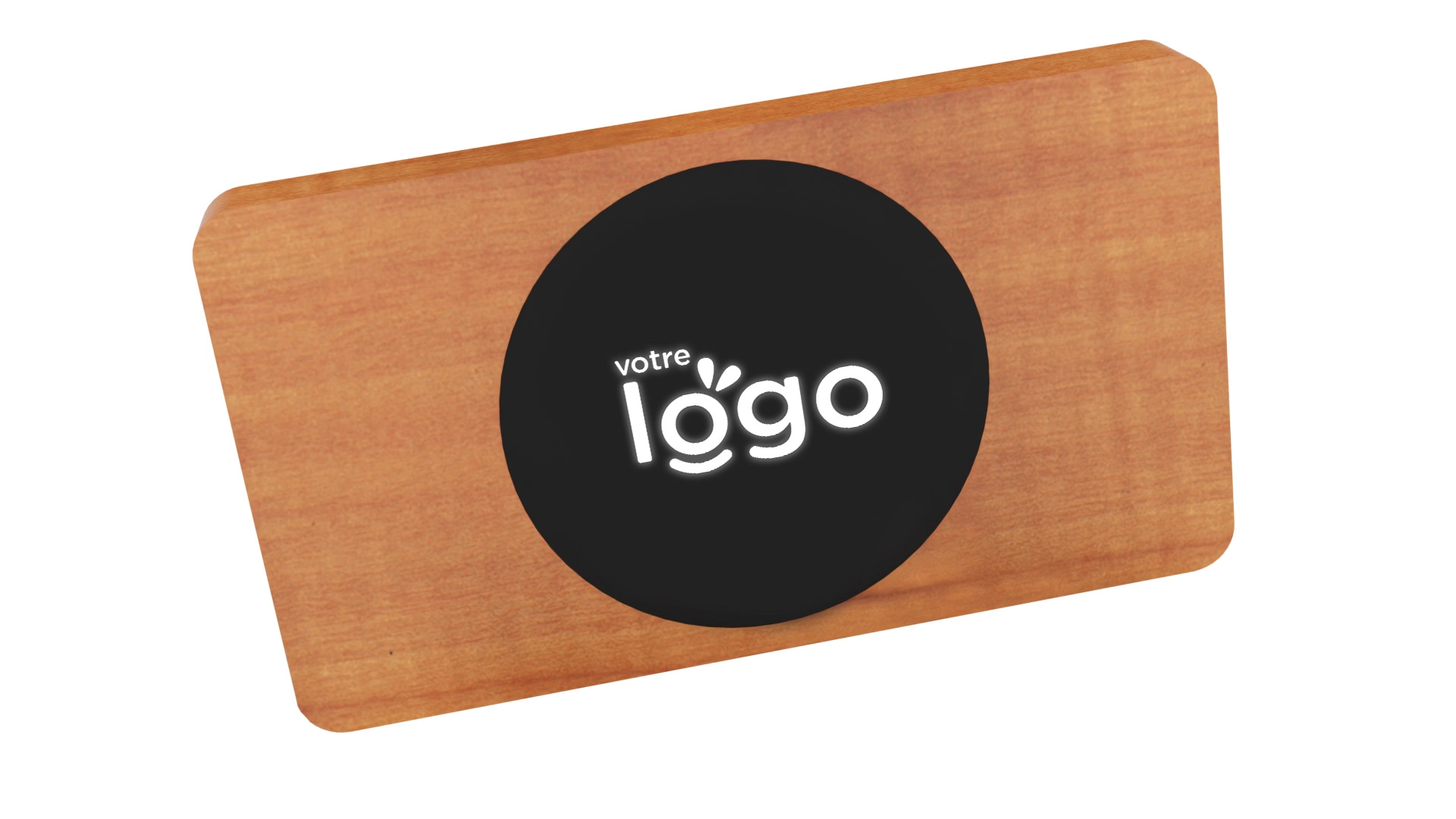 Batterie de secours lumineuse pensée dans le respect des normes environnementales : bois certifié FSC, câble 3-en-1 en rPET inclus, rubber avec revêtement antibactérien. Le logo lumineux se présente ici dans une forme ronde afin de réduire davatange la part de plastique dans le produit.