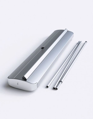Avec son revêtement noir mat, son pourtour aluminium et sa courbe futuriste, l'enrouleur vous envoie un vent de fraicheur sur des rollups victimes de leur succès. Tout fonctionne comme un rollup classique : le montage de l’affiche, la fixation de la baguette. La seule différence est que vous ferez sensation en le sortant de son sac de transport (inclus) renforcé avec de des renforts en EVA. Moins de risques donc pendant le transport. Affiche personnalisée en bâche PVC 440g/m² norme anti-feu européenne B1. Pas de pied rétractable mais le poids et l’envergure de la structure garantissent sa stabilité.