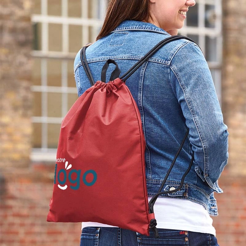 Nous vous proposons de réaliser un marquage sur le devant du sac à dos promotionnel sur une surface maximum de 23 x 34 cm avec un transfert sérigraphique en quadri, une broderie de 1 à 6 couleurs ou une impression de 1 à 4 couleurs pour votre logo ou visuel.
