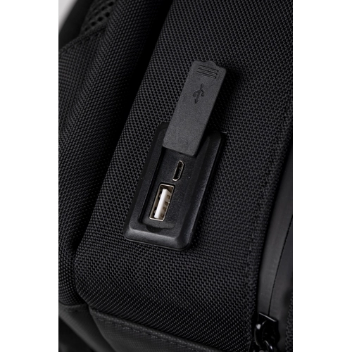 Equipé d'une batterie à charge rapide de 10.000 mAh, le sac à dos est également fourni avec un câble de chargement lumineux en rPET. Le câble permet de charger la batterie directement à partir du connecteur USB et Android à l'extérieur du sac (sans besoin de retirer la batterie).