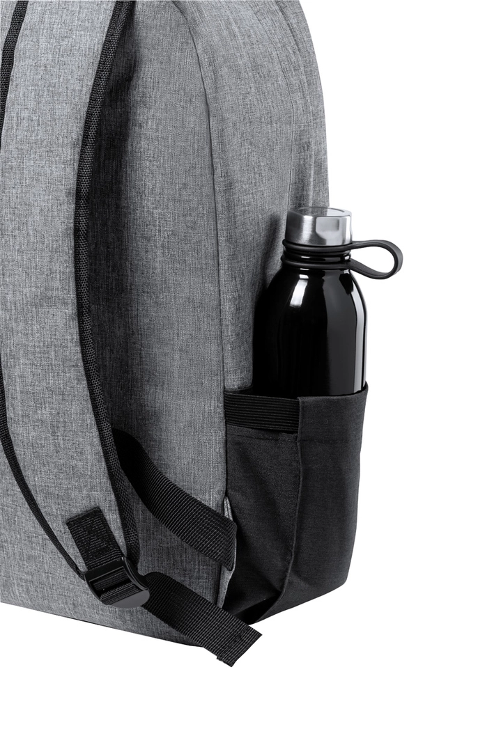 Sac à dos RPET bicolore avec compartiment principal zippé, compartiment rembourré pour ordinateur portable (15 ") et tablette (10"), poches latérales, dos et bretelles rembourrés. Polyester RPET 600D.