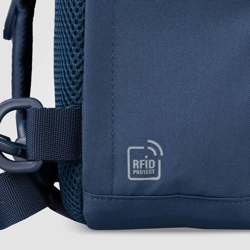 Côté sécurité, il est équipé d’une poche latérale zippée avec protection RFID, pour éviter les scans non autorisés, ainsi qu’un système de fermeture anti-vol avec tirette sécurisée. Il dispose aussi de bandes réfléchissantes pour une meilleure visibilité, d’un crochet métallique sur la poche avant, et d’un QR code pour le Digital Product Passport.