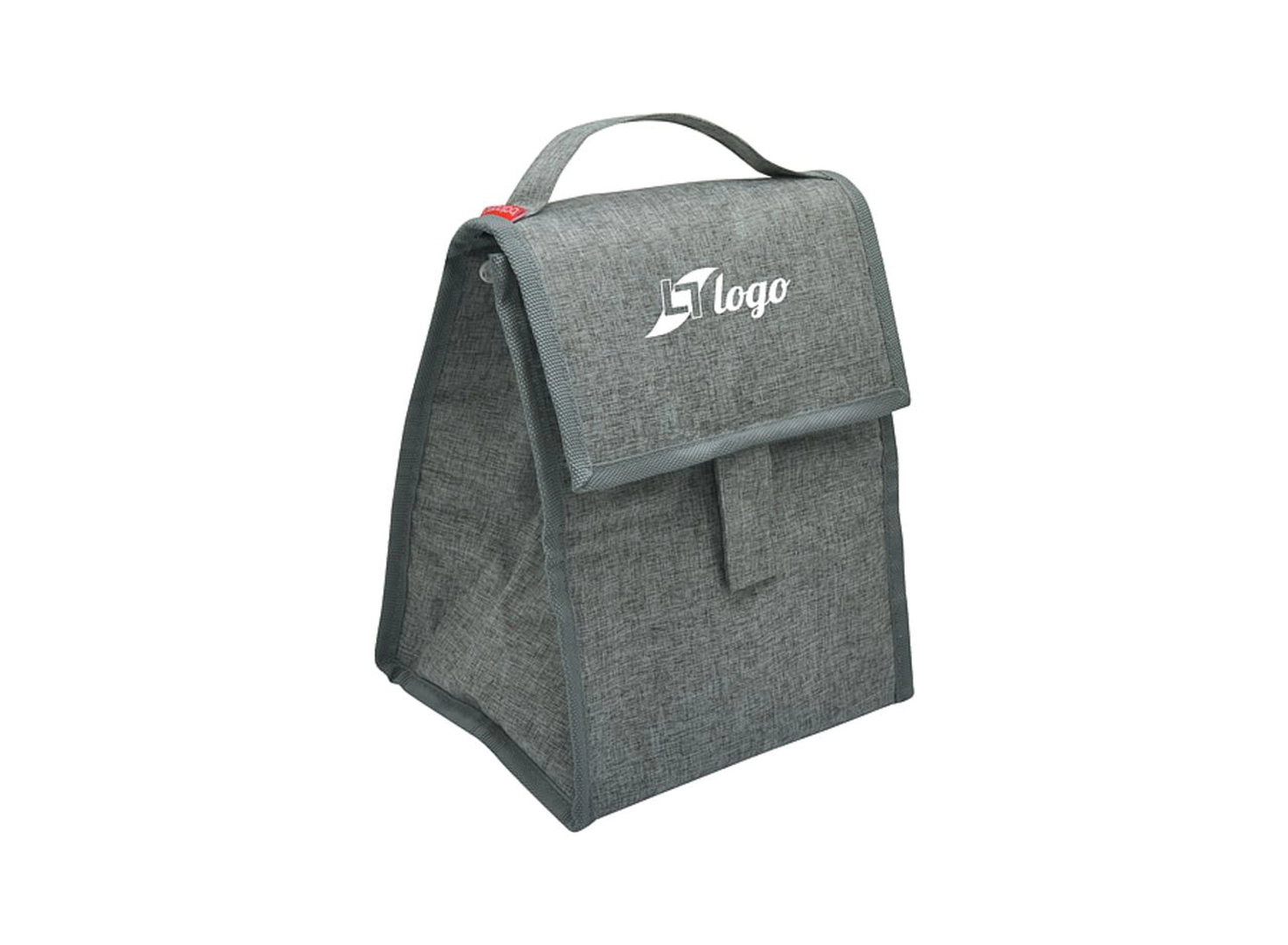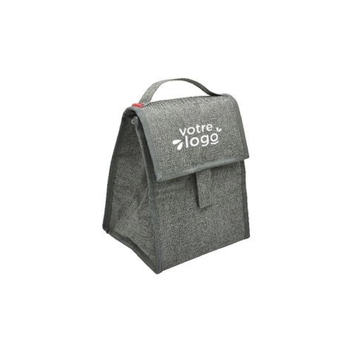 Sac isotherme pliable ultra compact en tissu wulong gris chiné RPET. Finition isolante 2mm d’épaisseur plus feuille d’aluminium.