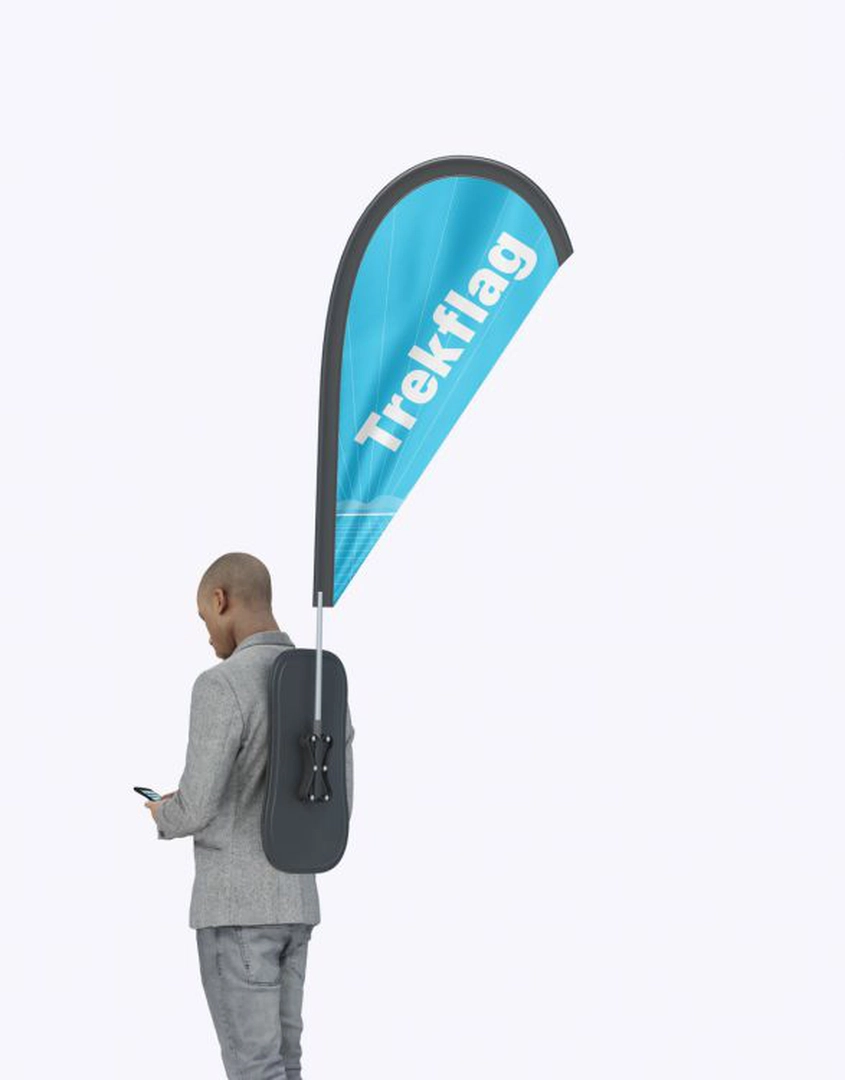 Ce sac à dos porte-drapeau aussi appelé meneur d’allure est particulièrement adapté aux opérations de street marketing et aux courses à pied. Le sac à dos est monté sur une coque thermoformée épousant la forme du dos. Serrage poitrine et taille. Voile maille 100% polyester 115g/m2. L’impression est réalisée en sublimation numérique Haute-Définition, en recto ou recto/verso. En impression recto seule, le visuel reste visible de l’autre côté par transparence. 2 formes de voiles sont au choix : la forme classique ou goutte d’eau. Sur la voile, le fourreau noir est en polyester Oxford 300 D. Mât en fibre de carbone. L’installation se fait en 1 minute.