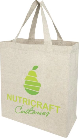 Ce sac shopping est solide et durable grâce au matériau en sergé de coton recyclé de 150 g/m². Longueur de la poignée : 18,5 cm. Le sac est fabriqué à partir de déchets de pré-consommation générés par les usines pendant le processus de coupe du tissu. Livré avec une planche de fond robuste. Peut supporter jusqu'à 10 kg. Il peut y avoir des variations mineures dans la couleur du produit en raison de la nature du processus de production.