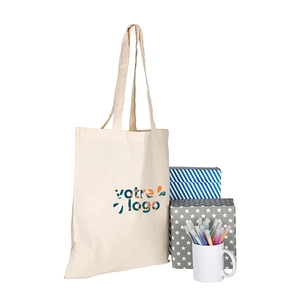 Grâce à son format classique de totebag et son tissu épais, ce sac publicitaire en coton est le parfait équilibre entre légèreté et solidité. Sa couleur écrue offre un rendu naturel et authentique. Ses qualités en font un sac résistant qu'on aime réutiliser.