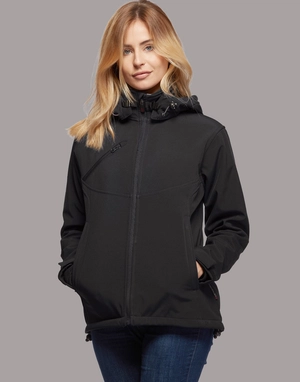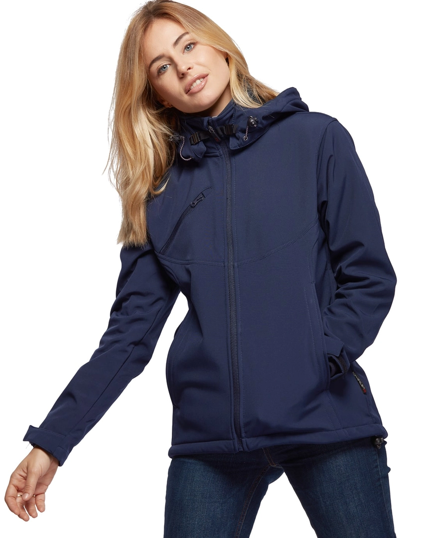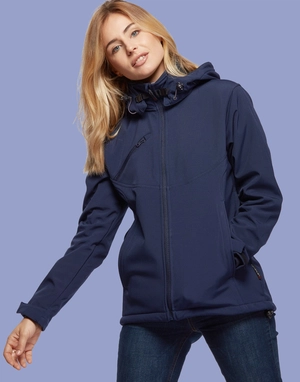 Softshell femme 3 couches MUSTAGHATA personnalisable : un blouson technique, fonctionnel et élégant, conçu pour offrir protection, confort et visibilité de marque dans toutes les conditions.