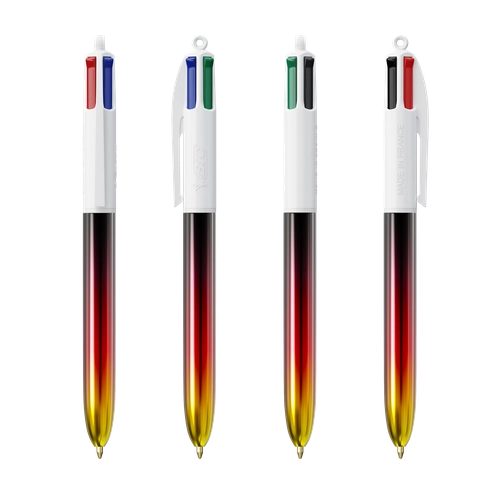 Découvrez la dernière innovation de Pantacom : le stylo BIC® 4 Couleurs® de la collection Flags, maintenant disponible avec une option de lanyard personnalisable. Ce stylo emblématique séduit par sa finition métallisée brillante et dégradée, offrant une nouvelle dimension chromatique qui permet de mélanger harmonieusement différentes teintes au sein d'un même corps. Vivez une expérience unique grâce à cet univers de couleurs !