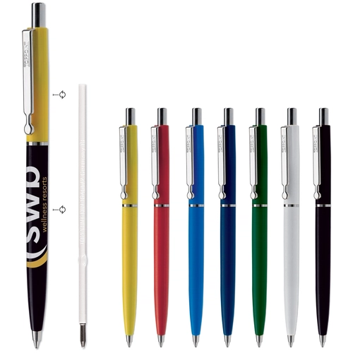 Sa particularité ? Ce stylo personnalisé est disponible en plusieurs coloris. Vous avez également la possibilité de réaliser des compositions de couleurs entre le corps (partie clip) et le corps du stylo (jaune et noir, etc).