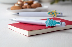 Stylo à bille en plastique avec clip sur mesure - taille maximale: 25x35 mm. Encre bleue.