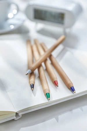 Stylo en bambou ESSENTIAL avec tige élégante en bambou, pointe colorée, encre bleue.