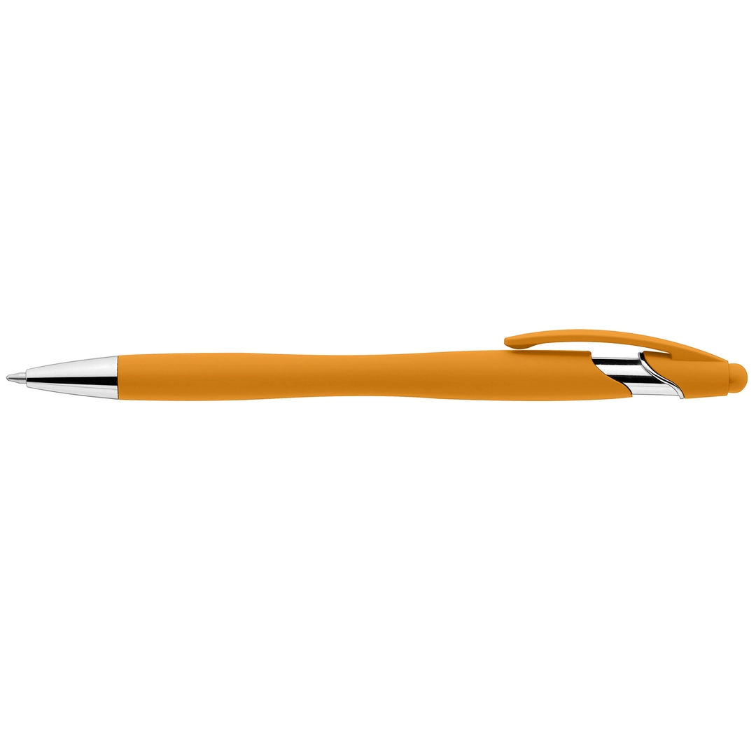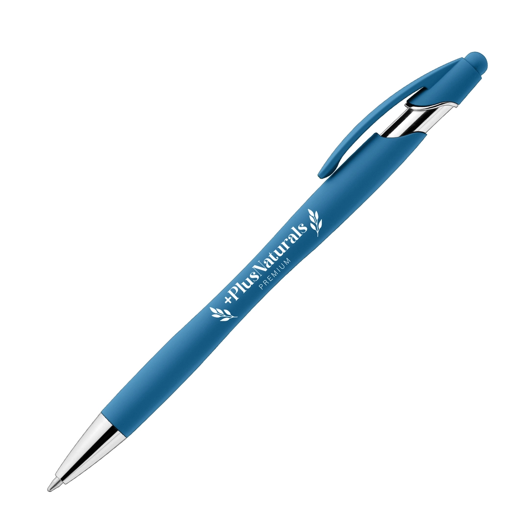 Avec des couleurs éclatantes qui attirent l'œil et des accents chromés qui ajoutent une touche d'élégance, ce stylo est conçu pour mettre votre marque sous les projecteurs. Son ergonomie est pensée pour le confort : un revêtement en caoutchouc souple enveloppe le corps du stylo, offrant une sensation satinée unique à chaque mot écrit.