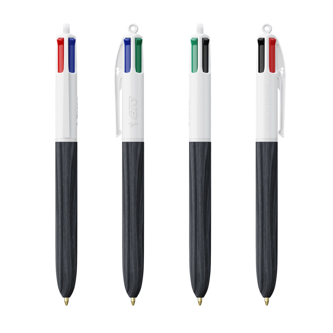 Toujours aussi pratique, il réunit les 4 encres classiques (bleu, noir, rouge, vert) avec une qualité d’écriture fluide et constante grâce à sa bille en carbure de tungstène. Le stylo est désormais plus durable avec 13 % de plastique en moins dans sa partie supérieure.