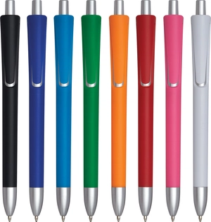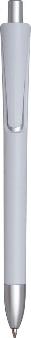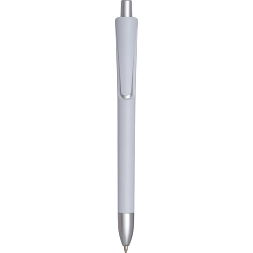 Découvrez notre stylo bille en plastique personnalisable, conçu pour allier praticité et élégance. Ce stylo est doté d'un bouton-poussoir facilitant son utilisation, avec un corps en plastique robuste et des décorations argentées sous le clip et au niveau de la pointe.