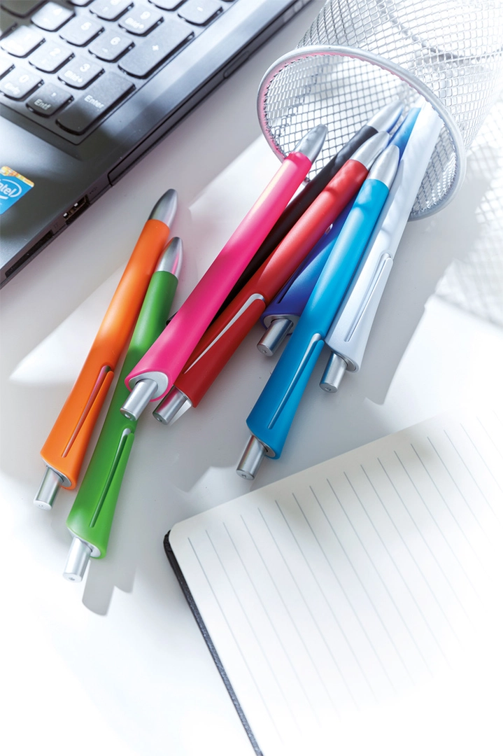 Avec une longueur d'écriture allant de 800 à 1.000 mètres, ce stylo offre une durabilité exceptionnelle, parfait pour une utilisation quotidienne. L'encre noire garantit une écriture fluide et nette, idéale pour les bureaux, les événements promotionnels et comme cadeau publicitaire.
