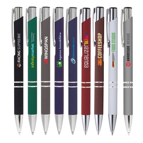 Le stylo CROSBY softy est notre référence dans la gamme écriture ayant le plus de succès. Ce stylo promotionnel possède un corps en aluminium en caoutchouc et une finition chromée brillante. Son touché et sa gamme fantastique de 18 couleurs en font un favori. Le stylo publicitaire est l'un des produits le plus impactant en matière de communication. Personnalisez le stylo CROSBY softy en gravure laser ou avec notre technique de marquage ColourJet pour un rendu haut en couleur !
