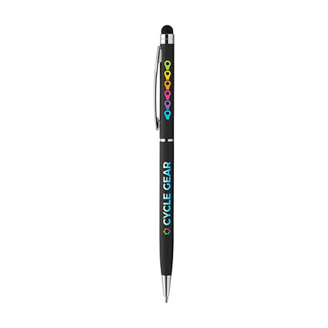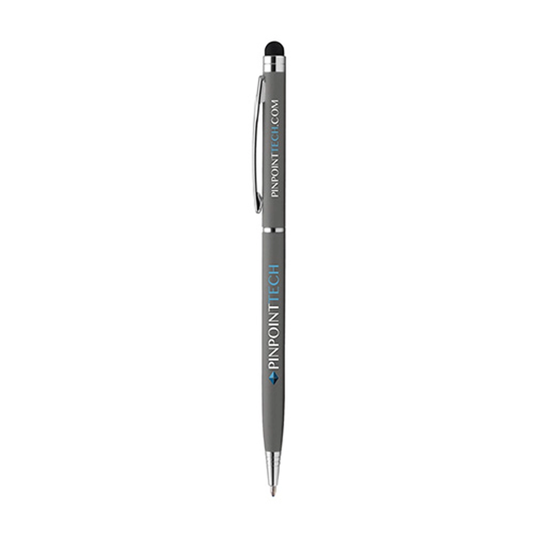 Le stylo MINNELLI softy ultra fin avec le stylet dans la partie haute est un classique dont on ne se lasse pas. Il offre un corps en caoutchouc avec des attributs chromés brillants. Le Soft Touch Stylet est compatible avec les smartphones et tablettes. Le stylo publicitaire est l'un des goodies le plus impactant en matière de communication par l'objet. Communiquez sur votre entreprise en personnalisant ce stylo promotionnel avec une élégante gravure laser ou sans limite de couleur avec notre technique de marquage ColourJet !