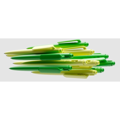 Ce stylo à poussoir se distingue par son corps disponible en noir et blanc à 100% recyclé et à 50% recyclé dans toutes les autres couleurs, proposant une palette de dix couleurs mates standards. Pour des projets spécifiques, des couleurs PMS sur mesure sont disponibles dès 10 000 unités, vous permettant ainsi de refléter au mieux votre identité de marque. L'agrafe, personnalisable en dix teintes polies, et les deux surfaces d'impression offrent des possibilités étendues de personnalisation.