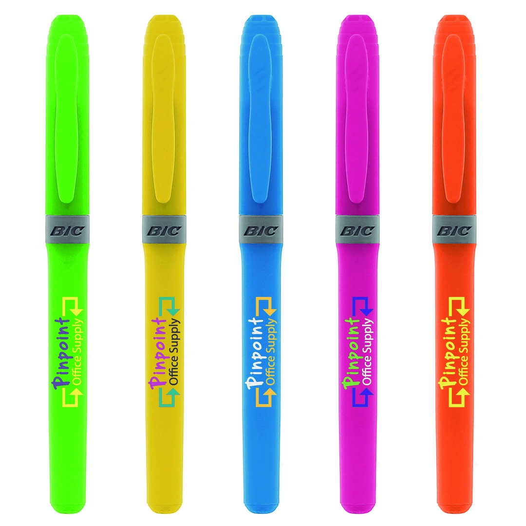 - Marquage par la sérigraphie, jusqu’à 3 couleurs, sur le corps du surligneur BIC® Brite Liner Grip , de 25 x 45 mm de dimension.