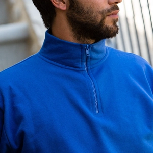 Sweat 1/2 zip couvert pour faciliter la personnalisation, manches raglan, gratté à l'intérieur.