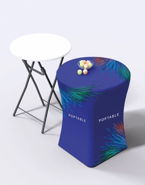 Cette table mange-debout publicitaire est idéale pour créer un espace de réception professionnel, élégant et personnalisé, en intérieur comme en extérieur.