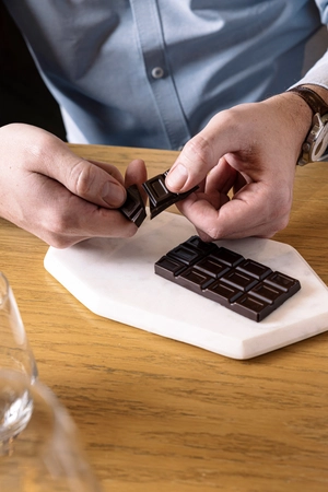 Une tablette gourmande et ronde en bouche au chocolat crémeux avec une pointe de fleur de sel mettant le palais en éveil.