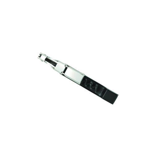 Tire-bouchon professionnel double levier. Manche en acier inoxydable. Mèche 5 spirales avec revêtement anti-adhérant noir. Lame coupe collerette microdentée. Décapsuleur rapide.