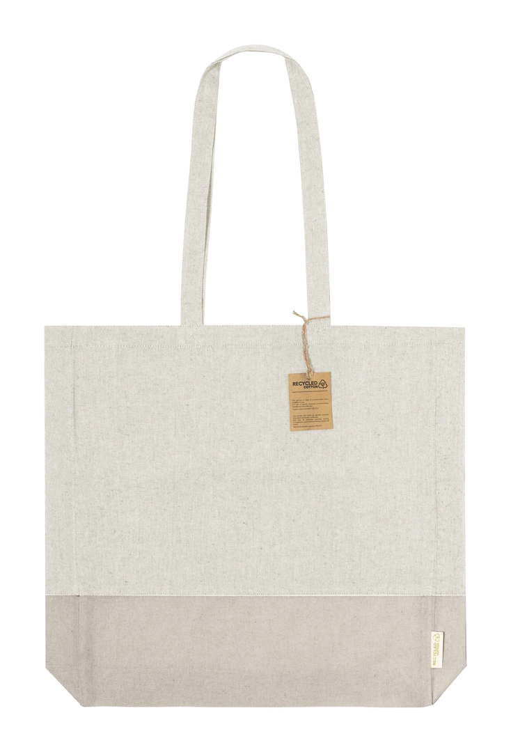 Doté de anses longues pour un confort optimal et d'un soufflet pour une capacité accrue, ce tote bag est l'accessoire parfait pour les courses, les événements ou comme cadeau d'entreprise durable. L'étiquette distinctive en coton recyclé souligne votre engagement envers la durabilité et offre un espace supplémentaire pour mettre en avant votre marque.