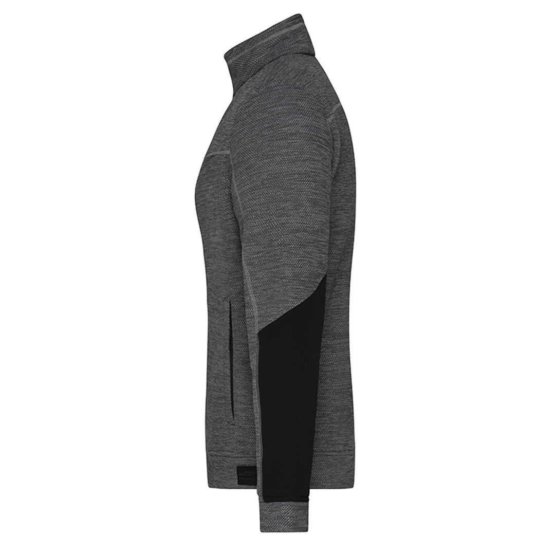 Signée James & Nicholson®, cette veste de travail en polaire tricotée est douce et facile d'entretien et plaira aux hommes comme aux femmes. L'intérieur est moelleux et douillet. La poche poitrine en tissu avec fermeture éclair contrastée, l'aspect chiné et les coutures contrastées lui confèrent un look original. Les autres caractéristiques comprennent des poches latérales avec fermeture à glissière dissimulée, des poches intérieures, un col montant et une fermeture à glissière entièrement dissimulée avec mentonnière.
