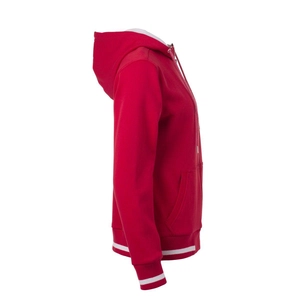 Tissu extérieur (300 g/m²): 80% coton, 20% polyester. Coton de haute qualité, couche polaire interne, manches en bord côte avec elasthanne, rayures contrastées à la ceinture et aux manches, capuche double couche avec couleur intérieure contrastée, zip métal YKK, poche kangourou, légèrement cintrée, coupe décontractée.
