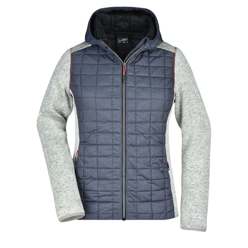 100% polyester. Veste pour femme en tissu doux, chaud, facile d'entretien avec effet mélange, capuche avec motif matelassée en surpiqûre, coutures plates contrastées sur les manches, capuche réglable, fermeture zippée sur la longueur, 2 poches latérales zippées, 2 poches intérieures. taille ajustée.